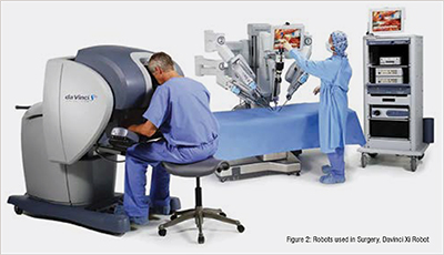 2. Robotic-Assisted Surgery: Using robotic systems, such as the da Vinci Surgical System, surgeons can perform complex operations with enhanced precision, flexibility, and control. Robotic surgery adds the edge of giving 3D visualization as well. Fig 2